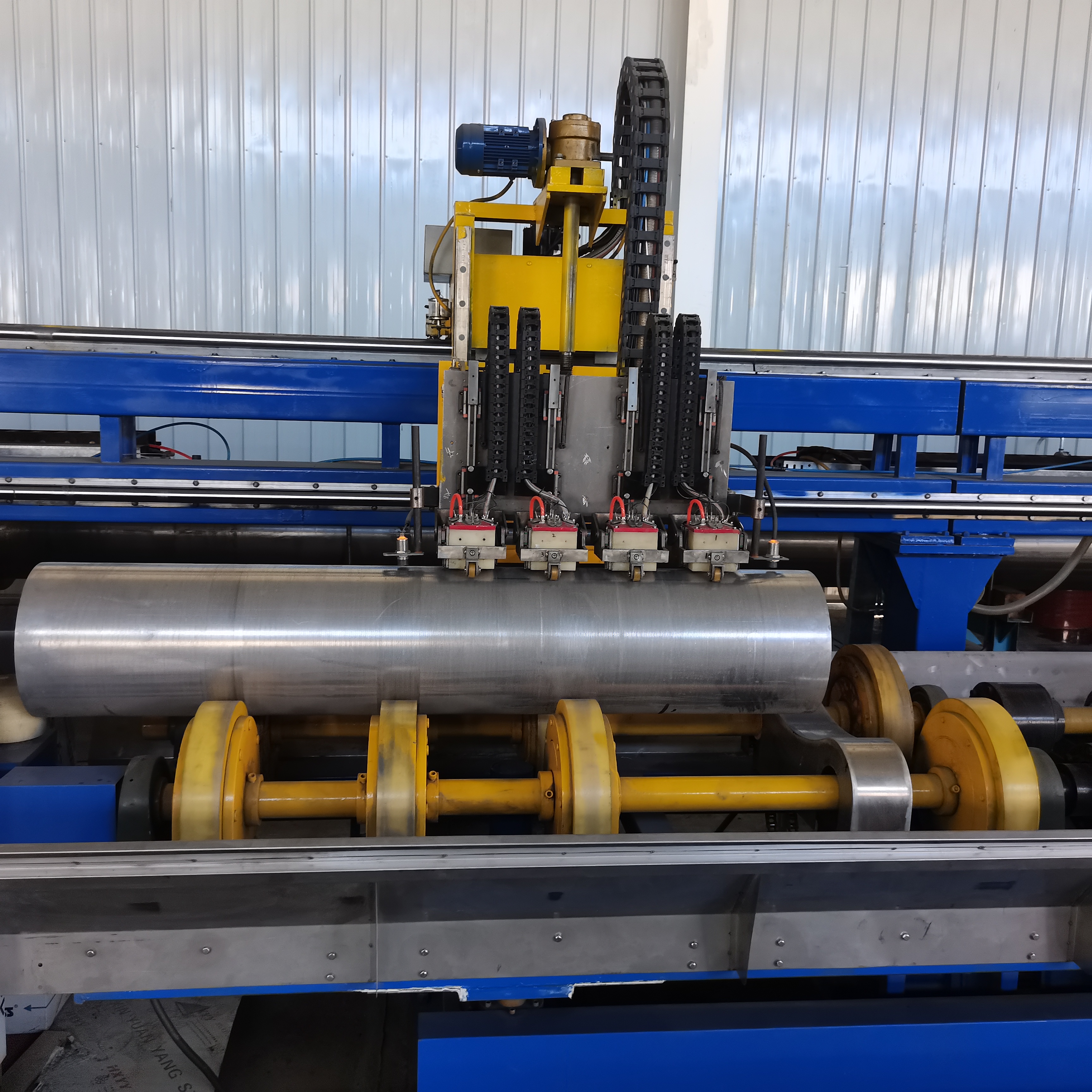 本設備適用于鈦合金管直縫和環(huán)縫檢測。整套系統(tǒng)集成在一個4軸檢測平臺上,水、電可快捷插拔,平臺放置鈦合金管側方。檢測直縫時把鈦合金管直縫旋轉至側方,檢測探頭調整至焊縫位置然后將探頭放置在焊維兩側,探頭開始噴水檢測,檢測平臺沿地軌行走至焊縫結束位置,檢測時通過激光焊縫跟蹤裝置判斷焊縫位置對探頭架進行調整,達到精確檢測的目的。